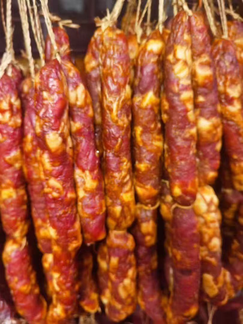其中在豬肉的選擇上面,大家可以選用前腿肉,肥瘦比例在3:7左右是最棒的,這樣制作出來(lái)的香腸在口感上更飽滿。那在在青花椒的選擇上面,大家可以選用四川的青花椒,想要做出正宗的麻辣香腸,我們就需要在選材選料上面講究。最后大家可能最困擾的是灌香腸的過(guò)程,大家不要覺得這件事很難,其實(shí)很簡(jiǎn)單,把肉都放進(jìn)去,就好了,但是需要在過(guò)程中盡量把空氣排擠出來(lái),那里面空氣多,也沒關(guān)系,不要慌,我們拿出針或者牙簽或者尖細(xì)的工具扎一下,讓空氣出來(lái),就可以了,香腸里面的空氣不排出來(lái),會(huì)讓香腸發(fā)霉,肉質(zhì)邊差,然后影響存儲(chǔ)時(shí)間。